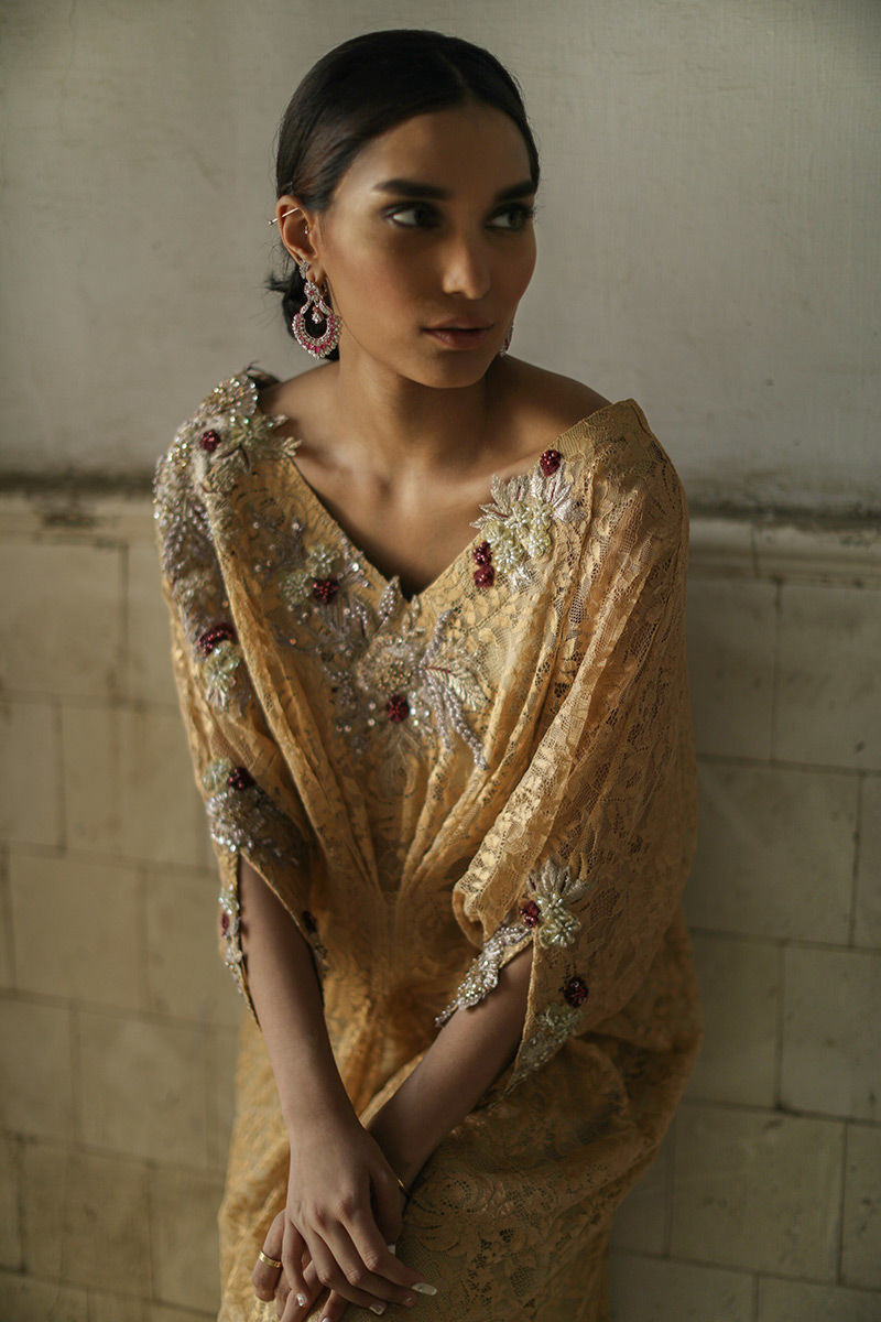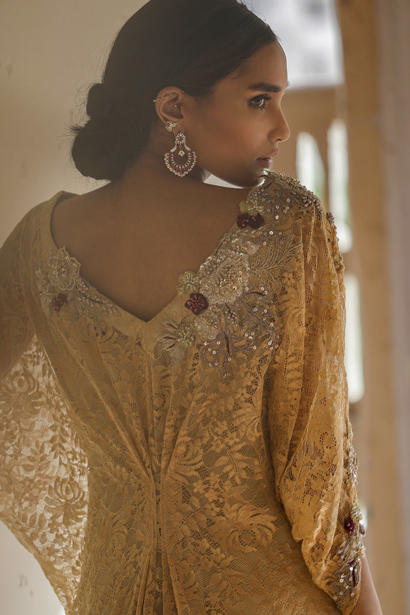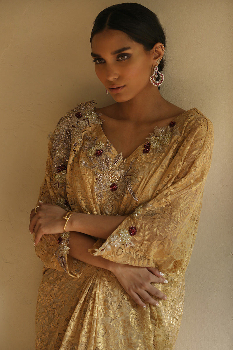 Color: Gold Fabric: Chantilly Work Details: Embellished