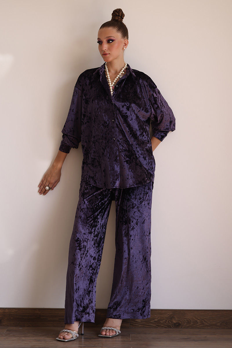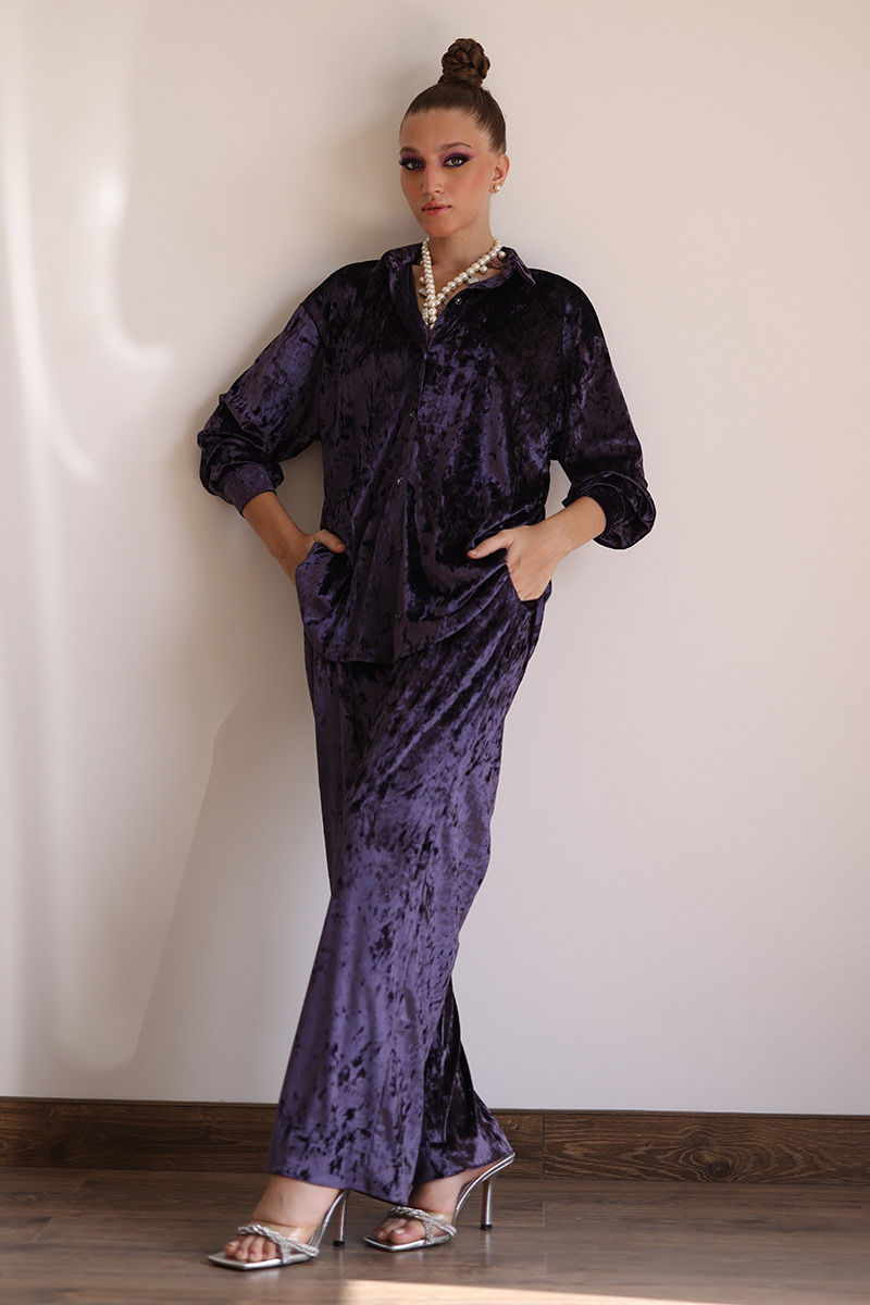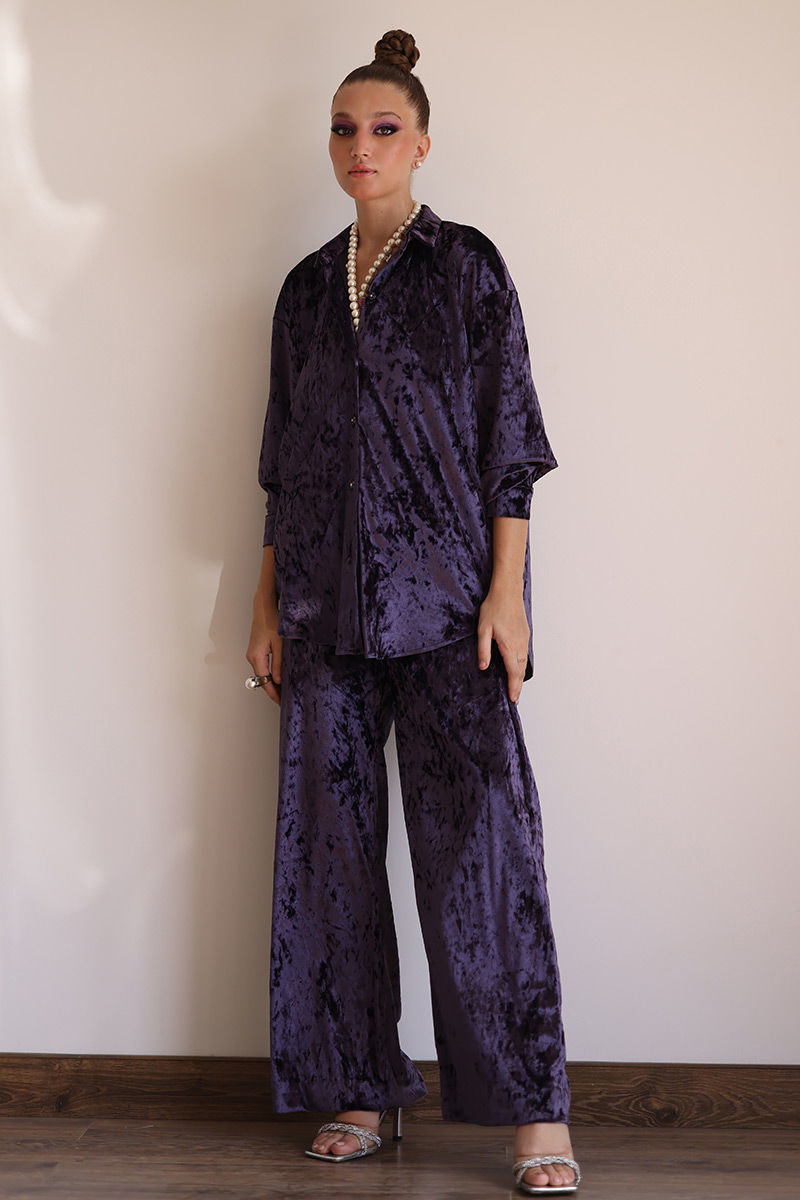 Elevate your style with our sweet grape velvet ensemble. This outfit effortlessly blends sophistication with comfort, ensuring you shine in every setting. The sweet grape hue adds a touch of vibrancy and sophistication to your wardrobe. The culottes complete the look with a touch of charm, ensuring you radiate confidence and grace wherever you go.