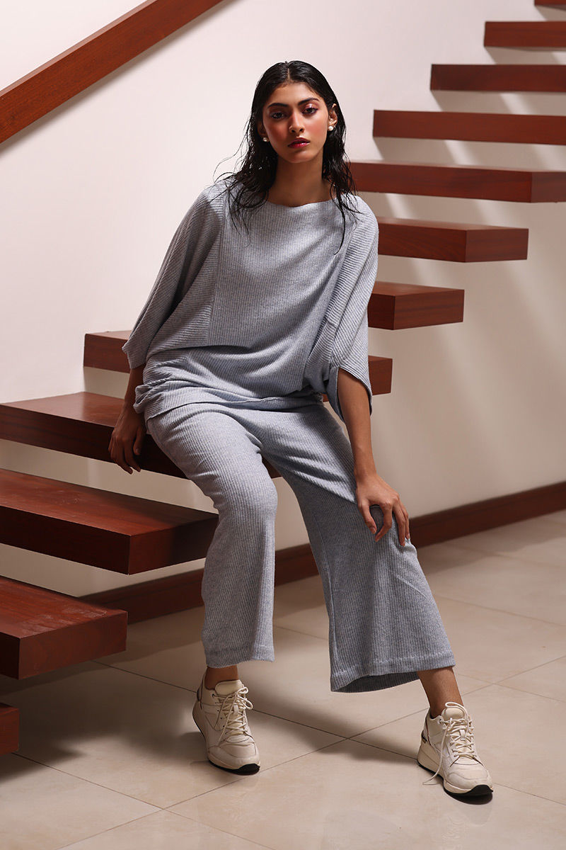 This serene starlight blue hue adds a touch of tranquility and sophistication to your wardrobe. Embrace the cozy allure of knitwear and step out with confidence in this versatile ensemble that's perfect for embracing any day with style. The loose culottes offer a relaxed fit, allowing for ease and a touch of laid-back elegance.