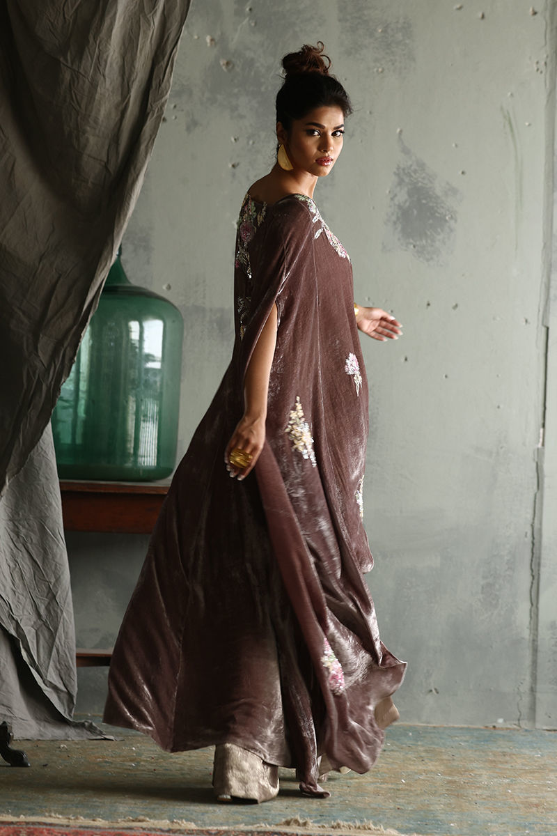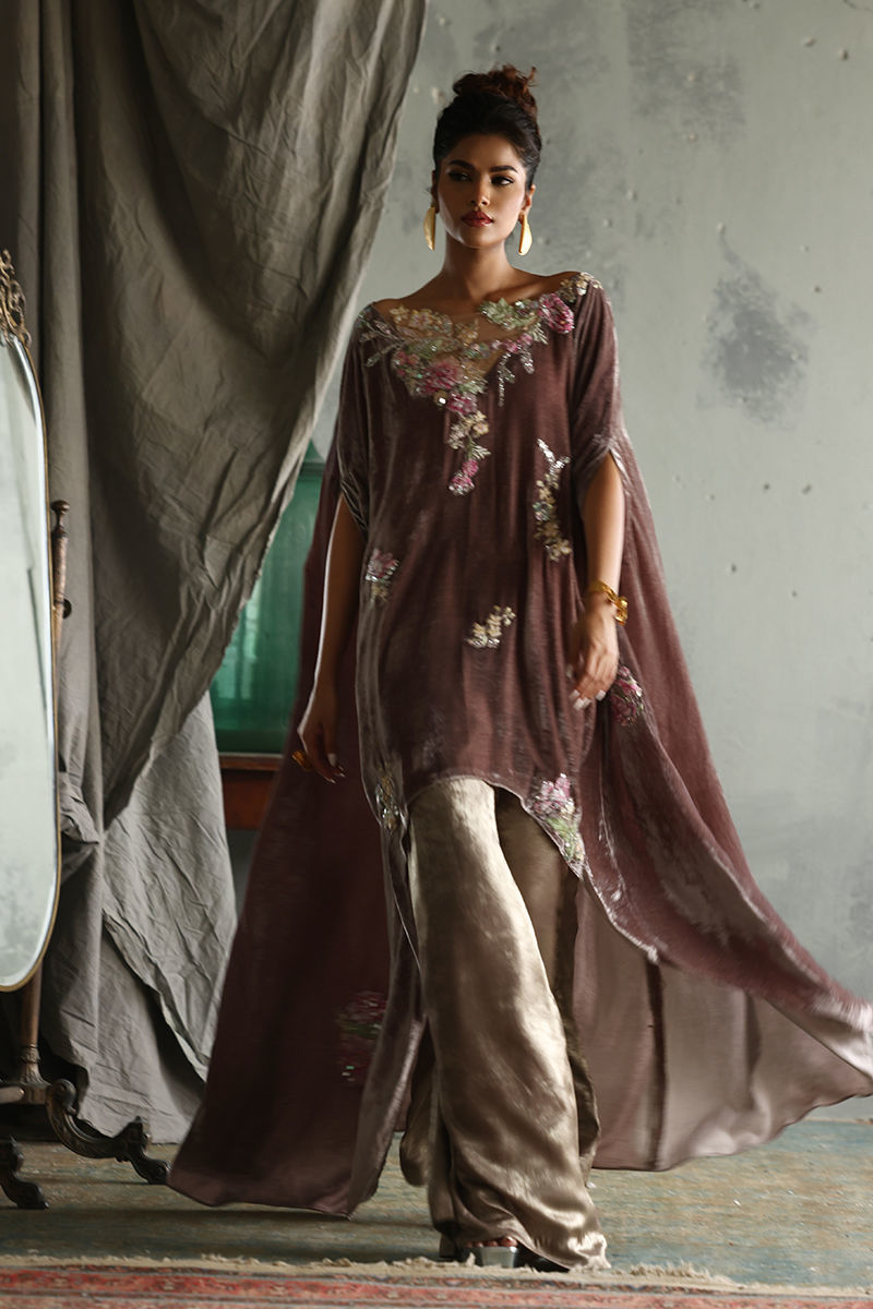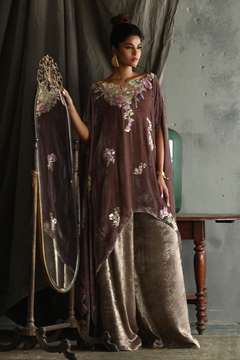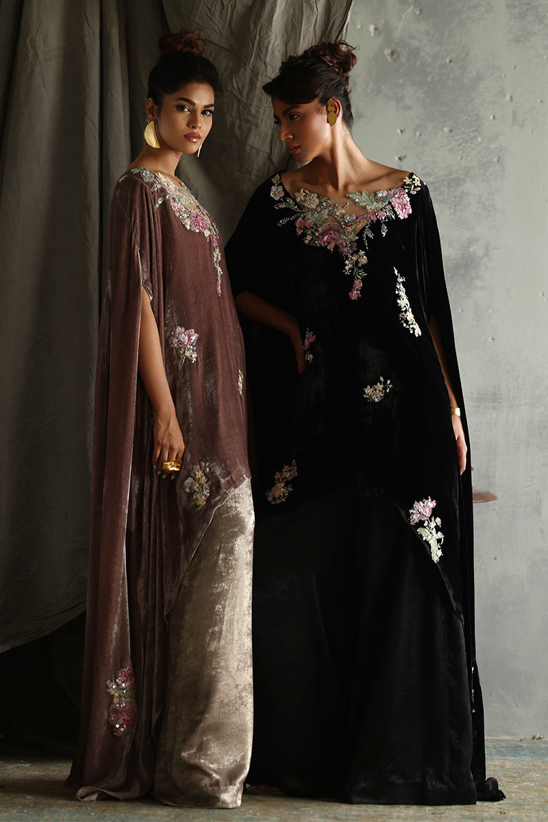 Elevate your style with our stunning Light Taupe Velvet Poncho, a perfect blend of elegance and sophistication. This exquisite piece features a front length of 32 inches and a flowing back length of 58 inches, designed to create a graceful silhouette. Crafted from pure velvet, it showcases intricate 3D printed and resham embroidered motifs, beautifully enhanced with sequins and cutdana work for a touch of glamour. Ideal for layering over evening wear or adding flair to any outfit, this poncho is a versatile addition to your wardrobe. Embrace luxury and artistry with this unique statement piece!