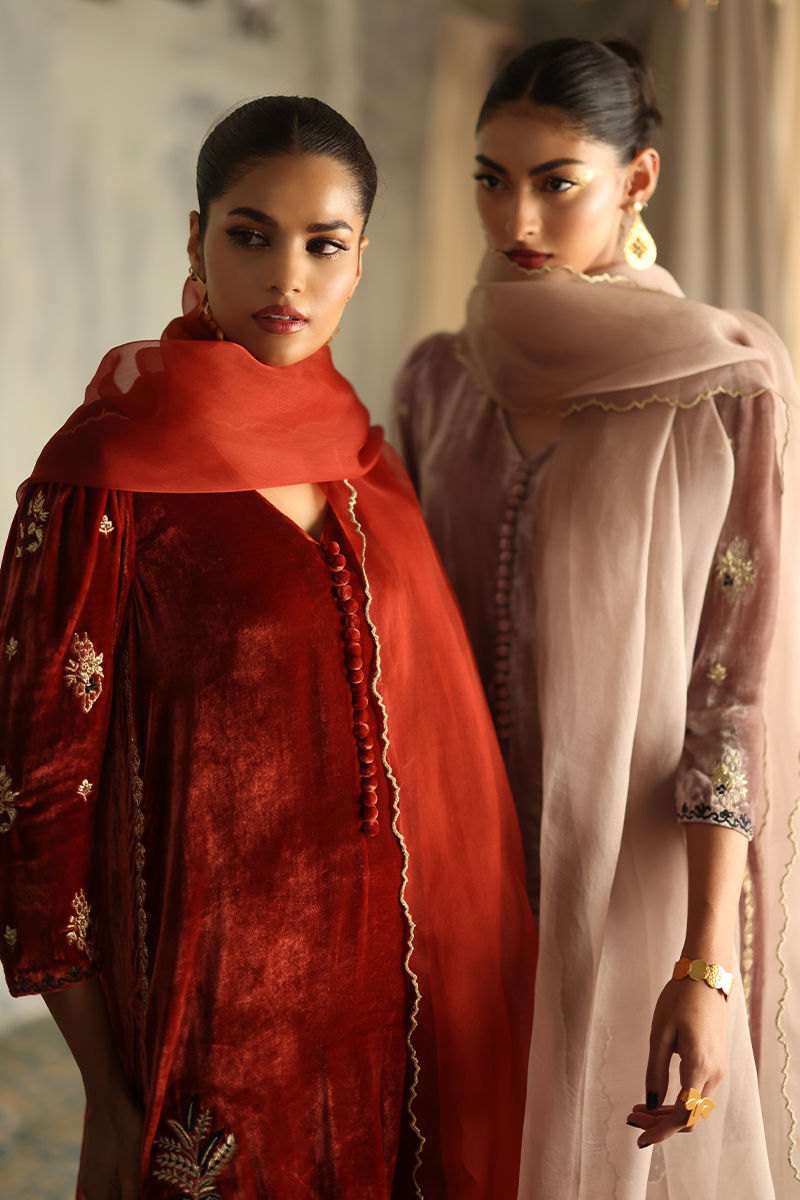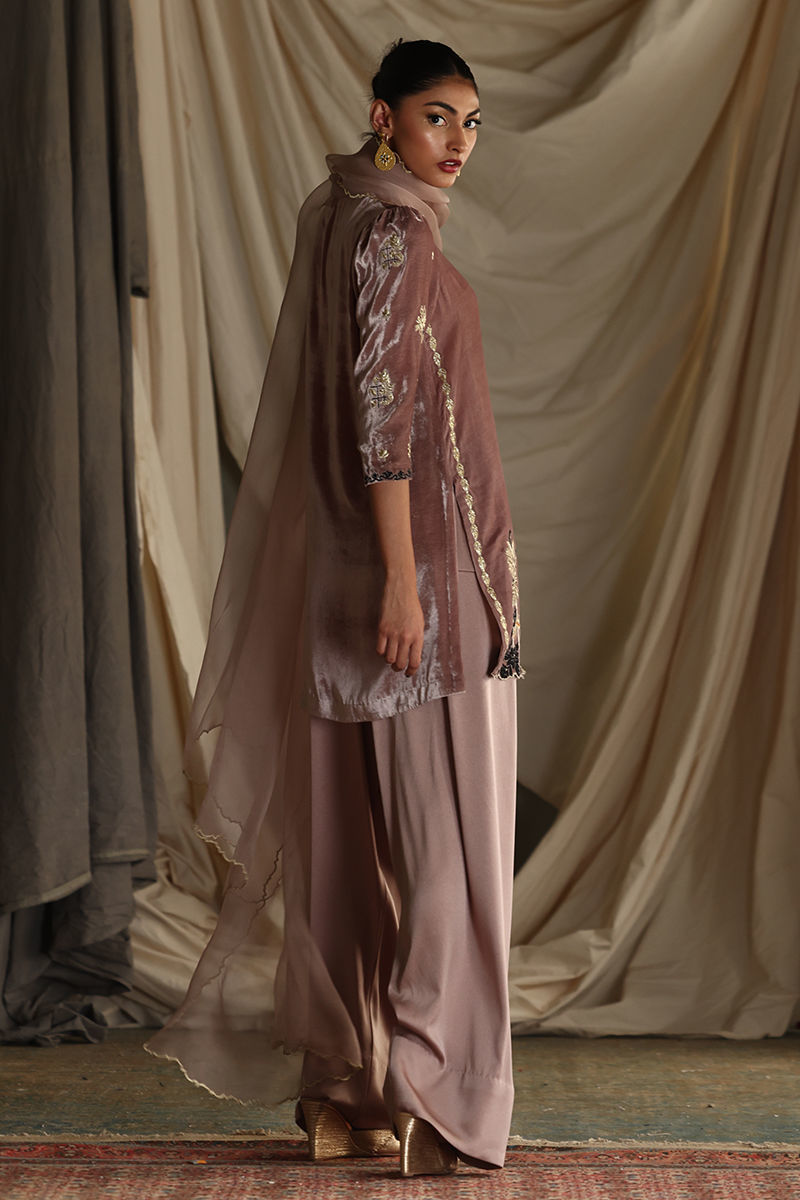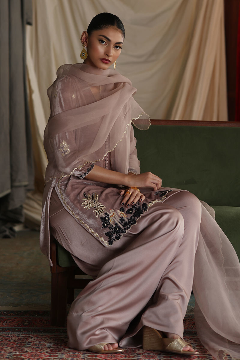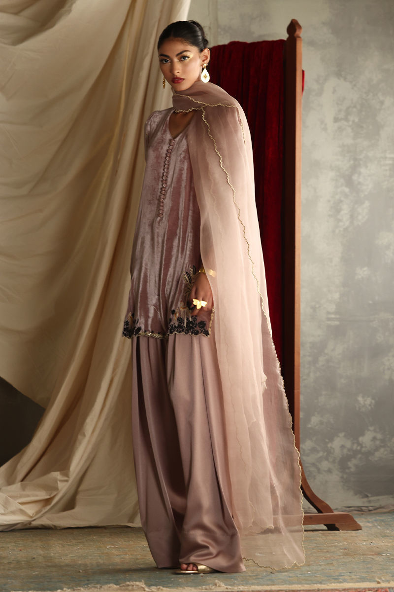 Color: Twilight Mauve Fabric: Pure Velvet Work Details: Embroidered and Embellished
