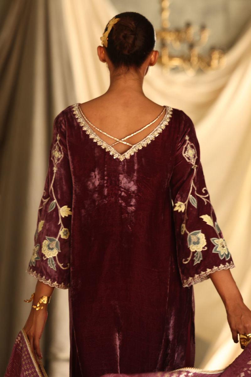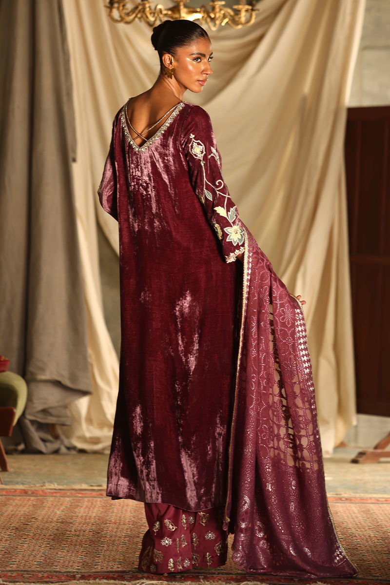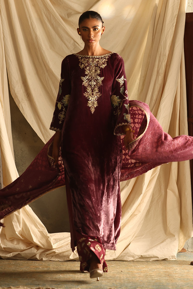 Color: Dusty T-Pink Fabric: Pure Velvet Work Details: Embroidered and Embellished