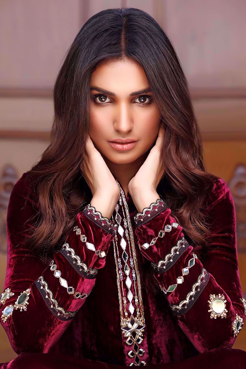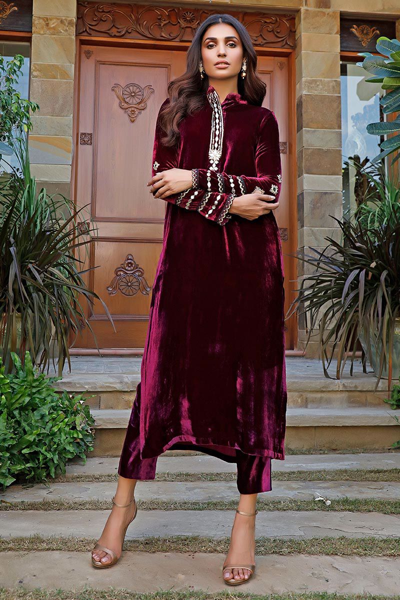 Color: Plum Fabric: Velvet Work Details: Embroidered