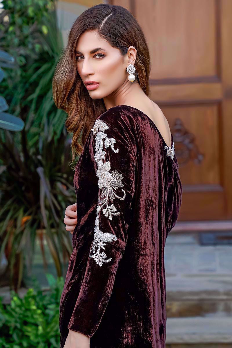 Color: Brown Fabric: Velvet Work Details: Embroidered