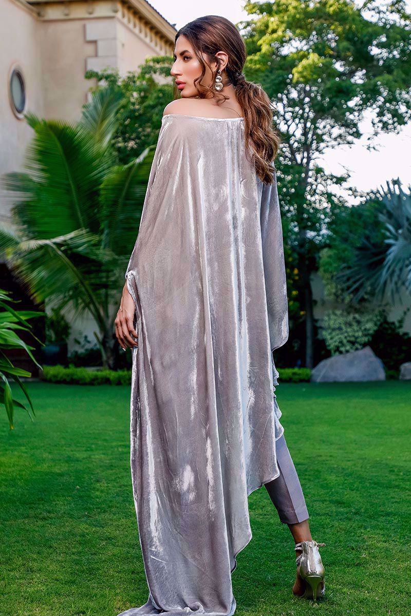 Color: Grey Fabric: Velvet Work Details: Embroidered