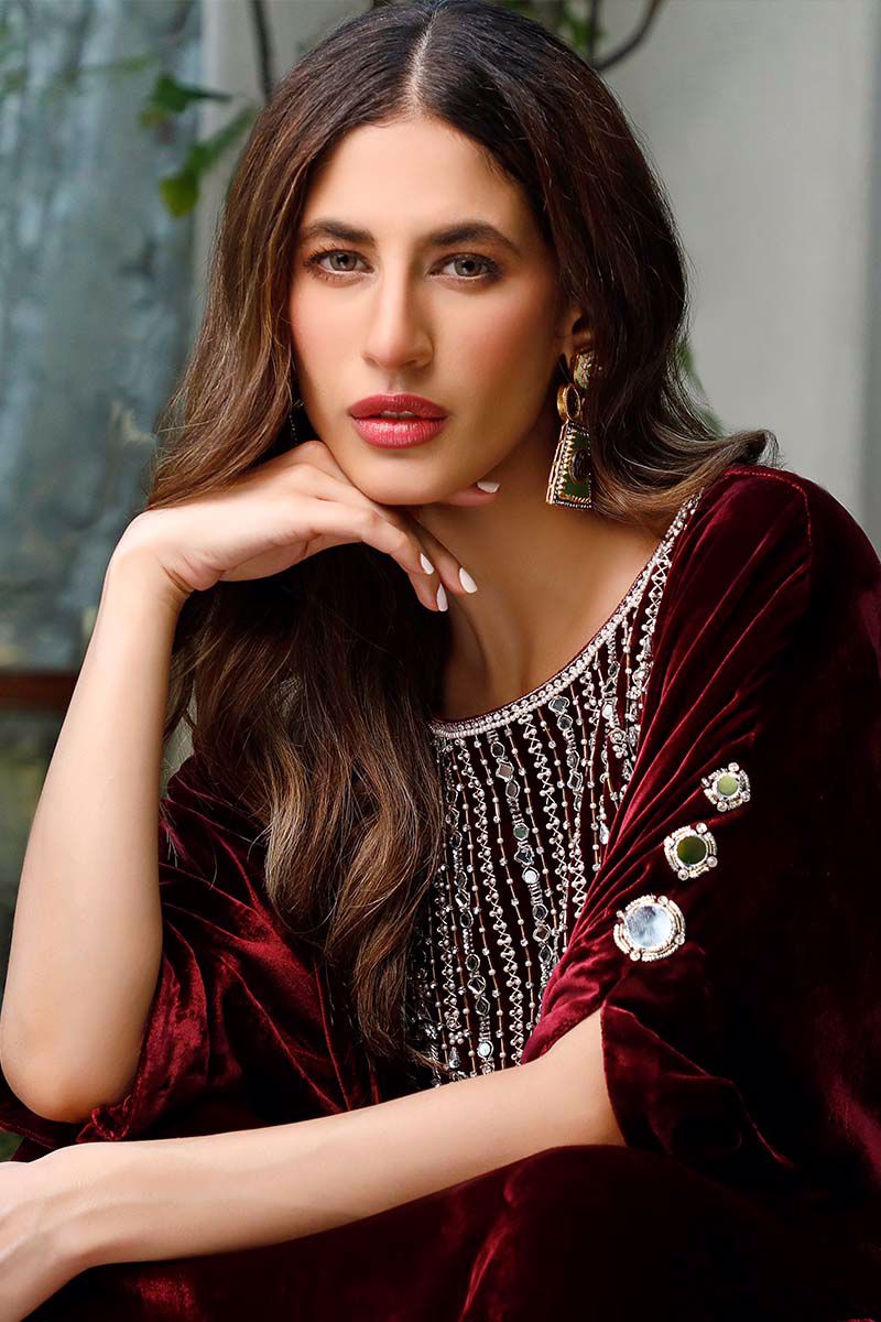 Color: Maroon Fabric: Velvet Work Details: Embroidered