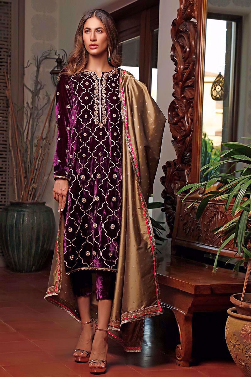 Color: Purple Fabric: Velvet Work Details: Embroidered